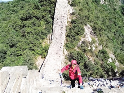 行走在蜿蜒起伏的渤海镇田仙峪境内的明代长城上,正北楼、油漏顶、箭扣、天梯和鹰飞倒仰雄伟壮观。通往箭扣的山顶,形似一把弯弓,箭扣由此得名。每次巡查这些别具特色的长城时,杜宗军心里总是感慨万千。放眼望去,正北楼威严耸立,天梯青云直上,长城就像一条沿山脊环绕的巨龙,充满神奇。站在正北楼向南俯瞰,怀柔城区高楼林立,怀柔水库尽收眼底。此时此刻,置身于祖国的大好河山之中,老杜不由自主地生发了自豪之情:“北京城里人守护的是皇家宫殿故宫,我这个乡下人守护的是雄伟万里长城。虽然守护对象不一样,可我们守护的都是国家重点文物,保护的都是中华文化瑰宝。所以我们理应尽心竭力。”