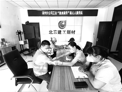 本报讯(通讯员 丁青)为全面了解职工身体健康情况,提高职工身体素质和自我保健意识,当好职工的“健康管家”,近日,北京建工新材涿州分公司工会开展了“健康服务队”招募活动,为职工进行健康监测,共计30名职工参加。