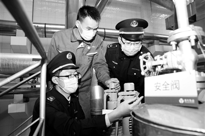 今年供暖季即将开始,供暖锅炉进入调试、运行阶段。为保障市民温暖过冬,连日来,东城区市场监管局持续开展特种设备安全检查工作。图为执法人员在北京国天物业管理发展有限公司开展现场检查,对4台锅炉安装的安全附件与检验报告一一确认,确保安全阀在校验周期内,压力表、温度计在检定周期内。