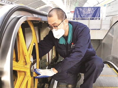 除了承担大项目,在日常工作中,为了减少设备故障率,姜山把工作从被动维修变为主动维护,在维护过程中练就了一套“看、听、摸、问”工作法。“看”就是通过眼睛观察设备的故障现象,各元器件工作状态是否正常;“听”就是听设备在运行中是否平稳无异响;“摸”就是通过触摸设备表面是否存在温度过高,震动过大的现象;“问”就是询问电梯故障初起时的情况,了解越详细越有利于快速分析故障点。他在每一次的巡检中应用这套工作法,使地铁电梯的故障率大大降低。