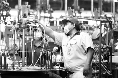 图为11月8日,在位于泰国罗勇府的泰中罗勇工业园,泰国工程师那塔武在盾安金属(泰国)有限公司生产线上工作。