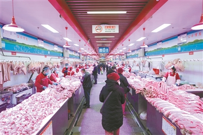 早上7点,正是新发地市场批发的高峰时段,记者在新发地猪肉大厅看到,滚动的大屏幕上显示当天的白条猪上市量为1659头。“政府连续投放储备冻猪肉,收效明显。”新发地农产品批发市场董事长张玉玺介绍,前期受交通不畅影响,白条猪上市量偏少,近期白条猪上市量逐步上升,日均超过1500头,比前两周增加13%左右。