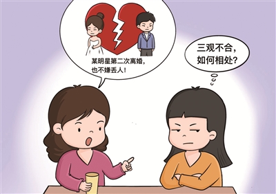 我有个同事工作很负责,待人也很和气,是个不错的人。然而一次闲聊时,这种不错的印象被打破了。那天大家聊到某个明星又离婚了,这个同事突然说:“这是她第二次离婚了吧?也不嫌丢脸。”我听后就对这位同事的印象有所改变,觉得他太古板了。并且这个不好的印象还泛化到工作中,每次该同事对我的方案提出意见时,我都有一种“果然不是一个时代的人,不懂年轻人的想法和创意”的感觉。我觉得与三观不合的人很难共事,但又避不开他,我该怎么办呢?