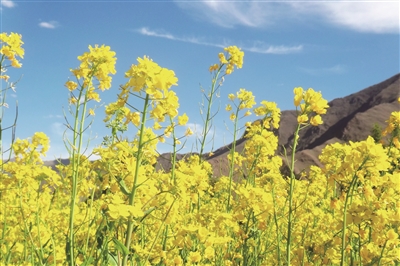 青藏高原上的油菜花,与高原特有的青稞、格桑花一起,营造出高原独特的、最美的风景。远处高高的雪山,近处金灿灿的油菜花。大自然用它巨大的调色板,展示了高原最绚丽的画卷。
