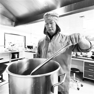 1994年,中专毕业的回族小伙李广瑞走进了月盛斋,成为一名煮制部不锈钢加层锅车间的工人。“那时,公司的煮制车间分为两个,楼下车间采用传统的煤火和铁锅加工工艺,楼上采用的是新型加工工艺。”他回忆说,当时,公司正在尝试用新型工艺烹制出与传统工艺口味相同的产品,新型工艺需要由锅炉房制作蒸汽,通过管道将蒸汽加入到加层锅中来烹煮食物,所以开节门的方式是有技巧的。