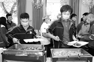 “好香啊,每天最盼望的就是这个点儿,等不及了,赶紧的,兄弟们!”顺丰快递詹铜川一边领着盒饭一边招呼着同事。在东城区东花市街道洞庭家宴餐厅的暖心驿站,不但有地方歇脚,还能吃上热气腾腾的午饭,价值25元的正餐,快递和外卖小哥只需要自己掏12块钱就能吃上。