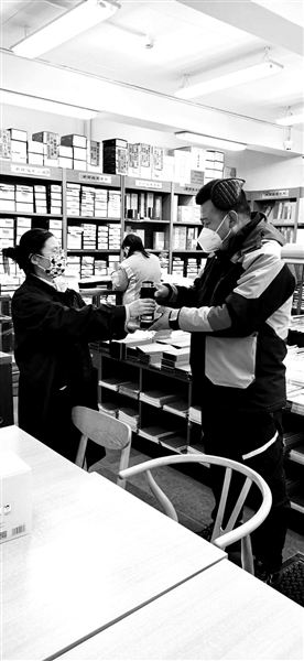 今年,“户外劳动者暖心驿站”在北京发行集团所属中国书店古籍书店设立,它如同温暖的路灯,照亮着在各自岗位上努力拼搏的人们。“最近天气又开始降温了,我们同事主动为顺丰快递员刘华递上接好的热水。刘华师傅负责我们这边的顺丰寄件业务好几年了,爱岗敬业,认真负责,他们平时工作繁忙,总是‘在路上’,还要不断打电话与人沟通,随身只有一个小保温杯,太不容易了。”北京发行集团所属中国书店古籍书店副经理赵悦说。