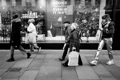 12月13日,人们走过英国曼彻斯特街上的促销广告。英国圣诞购物季遭遇强劲逆风。美国德勤公司对3000名居住在英国的人士进行调查后发现,约六成受访者会减少圣诞节支出,四成表示会在选购圣诞节礼物时改买廉价品牌。英国的通胀率也在10月达到11.1%,创下41年来的新高。 新华社发