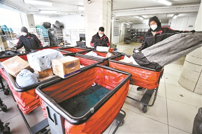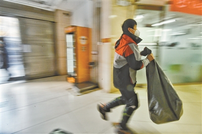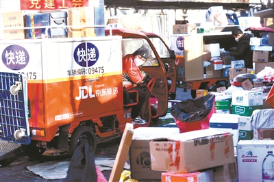 目前,北京的邮政快递业务正在加快复苏,快递小哥们正马不停蹄地穿梭在城市的大街小巷。