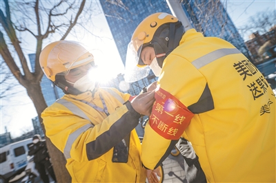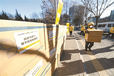 “前不久,我们还收到了北京市总工会、朝阳区总工会配发的‘暖心包’,让我们都感受到了‘娘家’的温暖和关爱。”段成明说,每天跑单的路上,即使天气再寒冷,疫情严峻复杂,但身上穿着“多重防护衣”,不仅干劲十足,而且心里特别踏实,“我们一定全力以赴,为市民保供不停歇!”
