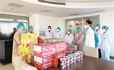 本报讯(记者 赵思远)“大家辛苦了,一定要多保重身体。”“医院工会为大家准备了慰问品,我们代表医院感谢你们!”连日来,首都医科大学宣武医院党委书记岳小林、院长赵国光、工会主席张维等一行深入该院重症医学科、发热门诊、后勤服务中心、呼吸科、综合科等看望并慰问奋战在一线的医务人员和职能科室工作人员。每到一处,院领导都悉心询问科室人员的身体状况和现场调度工作情况,并送上医院工会精心准备的慰问物资。