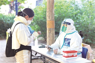 苑霞是支援全员核酸“战斗小组”的组长,会沟通、会协调,更会照顾人。今年春节前夕,丰贸公司接上级指示,在丰台区开设国有企业作为管理单位的第一家集中隔离观察点,大年三十儿本来是家人团圆的日子,转运到隔离点的隔离观察人员未免都有些情绪,人文关怀组急需沟通能力强的人来安抚隔离人员情绪。接到动员令后,苑霞把照顾父母和年幼孩子的重任交给丈夫,没顾上吃年夜饭,就义无反顾奔赴隔离点。面对隔离人员的不解、牢骚,苑霞始终以一颗真挚的心、饱满的热情去宽慰、劝说和化解隔离人员的不满,反复协调沟通,力求隔离人员早日安全回家。经历连续多日不规律的饮食,她胃疼的老毛病犯了,每天吃着胃药与战友并肩战斗。一位医生曾在工作例会上哽咽着说:“我知道人文关怀组有多么不容易,感谢你们给我们医护人员的帮助和支持。”