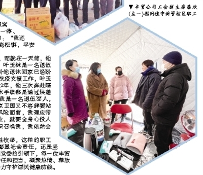 “潘姐,您怎么还和我们一起守卡口啊?您不是马上就退休了吗?”“这几天我们工会到支援点位慰问去了,支援人手紧缺,大家都坚守在一线,我不能这时候撤下来,再说离退休还有几天呐!”丰贸公司工会副主席潘欣回答道。前段时间,看到疫情防控工作各项事务繁忙,已经两年没有休过假的潘欣,在即将办理退休手续之际依然坚守在一线和年轻同事同心抗疫。从年初到年中,她不仅多次带队到一线慰问,还当过核酸检测组组长、卡口值守员、司机、后勤等很多“角色”,只要是她能替的班、站的岗,潘欣全都主动上前一步,让业务人员腾出时间开展工作,维持公司稳步运行。