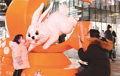 令小朋友倍感惊喜的是,“冰墩墩”变身“兔墩墩”又与大家见面了。近日,北京2022冰墩墩兔年特别版系列新品正式发布,并在王府井工美大厦一层上市销售,很多小朋友喜提“兔墩墩”,他们高兴地拍照留念,以此迎接新年。