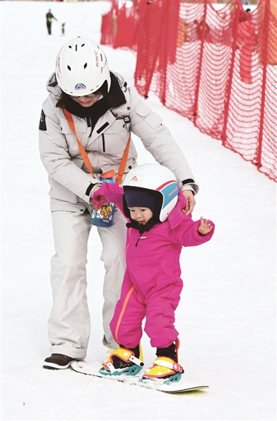 北京迎来冬奥会后首个雪季,各大滑雪场也做足准备,迎来“重启”。目前,位于延庆的八达岭滑雪场客流逐渐恢复。元旦期间,初、中、高级8条雪道全部开始运营,滑得好的游人在雪道上疾驰,初学者在雪场四周平坦的地方练习。在新的滑雪季,大家都迫不及待地享受滑雪运动的速度和魅力。“现在冰雪运动越来越普及,学校也有开设相关课程。如今滑雪场开业了,所以赶紧带孩子来体验一下。”进入寒假,市民张先生带着孩子驱车来到八达岭滑雪场。