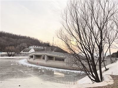 这里地处一个叫黑石头的小流域,流域面积约8平方公里,1976年,石景山区政府为解决黑石头地区缺水问题建设了这座水库。水库面积不大,只有三四千平方米,与我们老家的大池塘差不多规模,是名副其实的袖珍水库。但水库的造型颇具艺术感,大坝设有廊桥,出水管道也很优美,可以看出当时的建设者是颇具匠心的。水面已经冻结,游人也很少,水库周边设有座椅和登山栈道,游人可行可歇,一切随意。