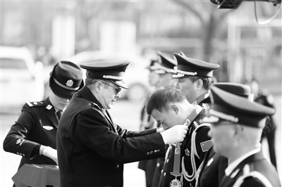 近日,北京市监狱(戒毒)管理局为从警40年、30年民警颁发荣誉纪念章。在现场,市司法局党委书记、市监狱局第一政委苗林,市监狱(戒毒)局党组书记、局长刘亚东分别为从警满40年、30年的民警代表颁发荣誉纪念章,全局各监所同步直播。本报记者 孙妍 摄影报道