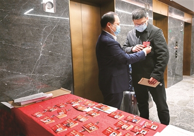 1月12日19时,参加政协北京市第十四届委员会第一次会议的委员陆续到驻地报到。图为市政协工会界委员报到现场。