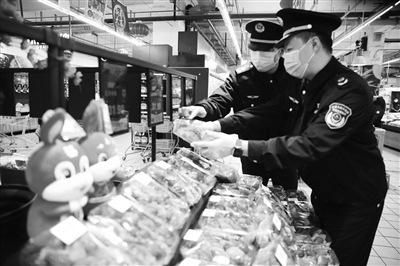 各区市场监管部门多举措加强食品检查力度。连日来,海淀区市场监管局结合辖区特点和近期食品流通领域突出问题,全力开展节日期间食品安全保障工作。将销量大、风险高的食品种类作为抽检重点进行快速检测,对个别存在问题的商户,执法人员已现场责令整改,要求其下架不合格商品,并依法依规做进一步调查处理。