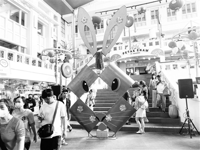 位于印度尼西亚首都雅加达的中国城是印尼最大和最古老的唐人街。临近春节,不少雅加达市民、华人华侨来到这里购买年货、添置新衣、休闲娱乐。图为1月16日在雅加达中国城一栋商场内拍摄的兔年装饰。新华社发
