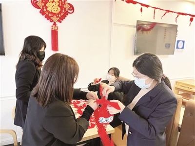 春节临近,年味渐浓。近日,北京公交资产管理分公司工会在五路办公区组织开展“挂红灯 贴窗花 迎新春”活动。喜庆的窗花和彩灯表达了广大职工喜迎佳节的美好祝愿,把浓浓的年味儿和新春祝福送到办公区各个角落。本报记者 边磊 摄影报道