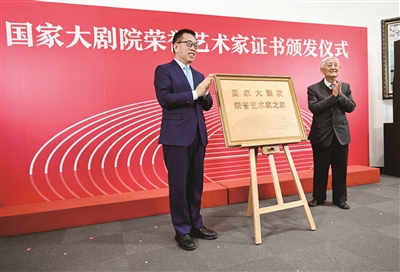 2月5日,国家大剧院举行荣誉艺术家证书颁发仪式,徐晓钟、赵汝蘅、陈佐湟、吕嘉、濮存昕、吴灵芬、高广健、黄小曼、朱塞佩·库恰、王蕾、李喆、焦淼、周晓琳、董汶亮、梁羽丰等被授予荣誉艺术家证书。荣誉艺术家代表在现场讲述了参与国家大剧院艺术生产创作的切身感受,并表示将继续深耕创作,打造精品。