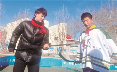 专业运动员的经验分享极大鼓舞了小队员们,他们聚精会神地倾听,认真按照动作要领完成一个个漂亮的击打,学校冰场上不时响起欢呼声。