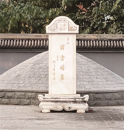 原来,谭鑫培晚年潜心事佛,常年资助戒台寺,并在戒台寺受了居士戒。该寺住持德成大师认为谭鑫培对禅宗得悟很深,与其结下佛缘。谭先生向德成大师吐露心愿,希望百年之后还能伴佛左右,不远离寺院。德成大师欣然相许,将戒台寺所属栗园庄的茶棚赠予他,作为百年之后的居所。德成大师圆寂后,他的弟子达文住持圆了师傅的心愿,为谭先生修墓园,并立碑为证。1918年,谭鑫培灵柩迁居此地,了却了他生前的夙愿。