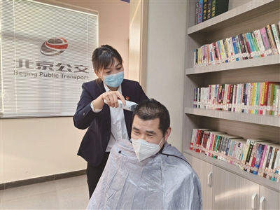 2月21日,北京公交客七分公司工会开展“幸福从‘头’开始,温暖从‘心’出发”理发活动。该公司工会所属十二个分会的贴心人服务队的志愿者,为职工们提供剪发服务。一把椅子、一个推子、一把剪刀,一个临时“理发店”开业了。