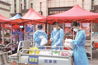 如果说搭设隔离封闭围挡和核酸检测点是他们的专业优势,但封控区消杀、运输、上门核酸检测等支援任务,他们并不擅长。但志愿者们秉承志愿精神,全情投入到社会中各个被需要的地方。2022年4月6日,11名志愿者火速支援新媒体基地天恒世界集团疫情防控工作,担任疫情封控区的志愿者,负责生活必需品分拣运送和大规模核酸登记等为期12天的志愿服务工作。