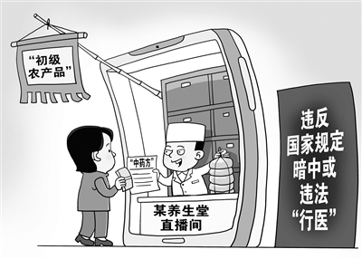 标着“初级农产品”的药材,被直播间夸大为能治多种疾病的“神药”;身着白大褂的老人,配合着主播在一旁称药、打包;将医疗词汇拆分重组成新型营销话术,以躲避违禁词审查。近期,记者调查发现,一些养生类账号活跃在网络直播平台,违反国家规定暗中或违法“行医”,真假难辨,扰乱市场秩序,给消费者和患者带来危害。(2月20日 新华社)