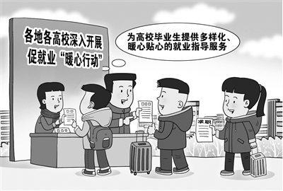 记者24日从教育部获悉,寒假以来,各地各高校积极响应教育部要求,开展促就业“暖心行动”,抢抓春季招聘期,推出系列举措,为高校毕业生提供多样化、暖心贴心的就业指导服务。(2月24日 新华社)□朱慧卿