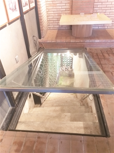 疫情这几年,地下城一直没有开放,如今还在整修中。我敲响紧闭的大门,和工作人员表明来意,并简短进去参观了一番。一进门的屋子被设置为临时展室,挂有很多当年挖防空洞的图片。在一处地洞口,有一扇靠遥控装置开启的玻璃门,启动按钮,玻璃门便徐徐打开,拾级而下即可看到一个洞口,里面都是淤泥,显然还没有整修。在工作人员打一声招呼后,我这段短暂的“探险之旅”宣告结束。看来,要想彻底探秘这个神奇的地下城,还得等到它彻底修缮开放之后。