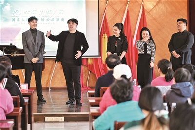 据了解,国家大剧院百场公益演出是贯穿全年的公益性活动,依托国家大剧院合唱团、管弦乐团、歌剧演员队和戏剧演员队等艺术家资源,将合唱、室内乐、戏剧及声乐表演等形式的高雅艺术送到街道社区、大中小学校、科研院所、部队以及国家机关和企事业单位等城市的各个角落。