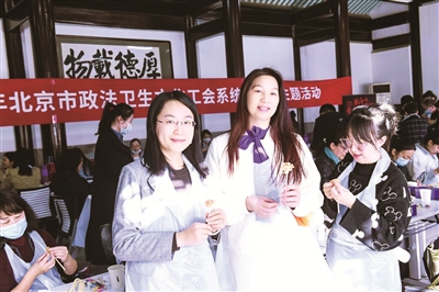 刨出的木花如云朵般舒展在指间,随着刻笔跃动,一朵栩栩如生的木质纹理的“玫瑰花”呈现面前……2023年市政法卫文工会系统“三八”节主题活动近日在北京艺术博物馆举办。女职工们在非遗传承人的指导下,体验了“斫木双玫”木艺活动和“针黹对鱼”拼布活动。本报记者 余翠平 摄影报道