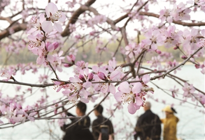 近期,随着气温升高,北京玉渊潭公园里的山桃花争相绽放,美不胜收。