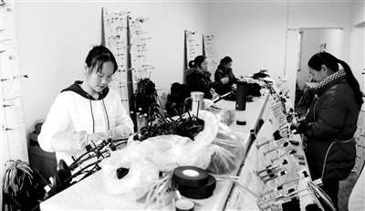 3月14日,四川省华蓥市明月镇汽车配件“微车间”里,女工在缠绕汽车线束。近年来,该市积极引导劳动密集型企业开设乡村“微车间”,企业提供原材料,以来料加工的方式让农村劳动力就地就近就业,既解决企业用工不足的问题,又方便农村群众务工、顾家“两不误”。(3月20日《工人日报》)