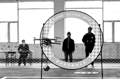 随着一阵嗡嗡声,在选手的操控下,挂载着“货物”的无人机起飞了。选手操控灵活,无人机平稳飞行,先后穿越圆形、正方形障碍物,飞到白色边框上方两米的位置,在选手的操作下,将“货物”准确地投放到指定目标内,再穿过半椭圆形的障碍物……最后稳稳停在起降点。这是第三届“北京大工匠”选树活动——无人机操作员比赛现场,选手们在赛场高水平“炫技”,比赛气氛热烈,扣人心弦。最终根据综合成绩排名,推荐北京大工匠建议人选。