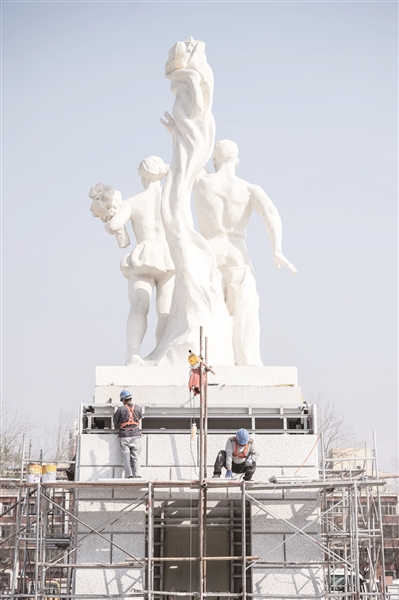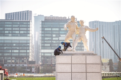 进入北门,首先映入眼帘的便是北广场正中央1959年落成的男女工人“迎宾”雕塑,以及在其东西两侧的“男子足球”和“女子篮球”两组雕塑。记者注意到,“新工体”遵循“传统外观、现代场馆”的原则,保持了椭圆形造型、外立面形式和比例、特色元素三个不变,继续呈现出1959年首都十大建筑庄重典雅的建筑风格。