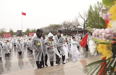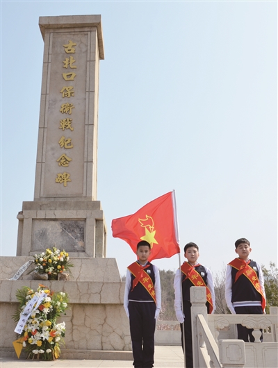 朝阳区实验小学密云学校在古北口保卫战纪念碑前举行一年级入队仪式;延庆大庄科乡组织机关干部、新时代文明实践站“延庆乡亲”志愿者、文化组织员开展“祭奠革命先烈”清明祭扫活动;顺义区300余名职工和学生代表聆听“娃娃连血染庞山”的英雄故事……