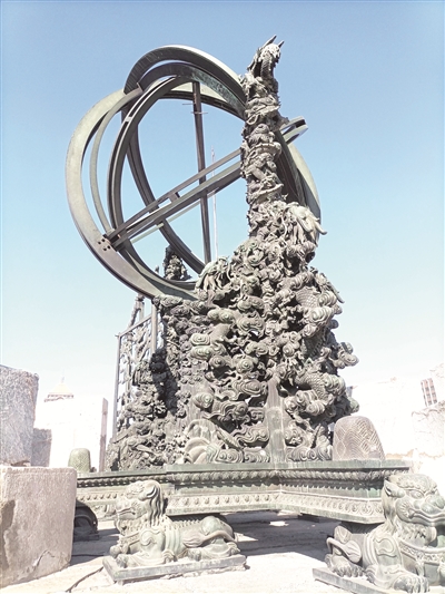 我仔细观赏着每一架天文仪器,除了造型、花饰、工艺等方面具有中国的传统特色外,在刻度、游表和结构方面还反映了欧洲天文仪器的风格。它们不仅是古代实用的天文观测工具,还是举世无双的历史文物珍品。