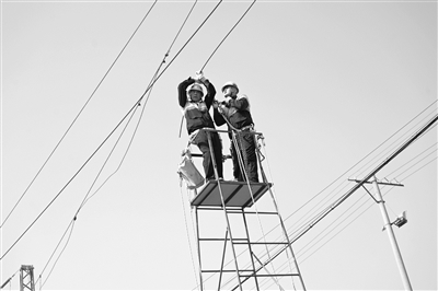 接触网负责把电能直接输送给电力机车使用,是电力机车的“动力”来源。在北京铁路电气化学校的实操比赛现场,4名推扶手将作业梯车推至指定位置,一名选手穿好作业工作服,戴上安全帽,认真检查安全带后,与作业辅助人迅速攀上6米高的梯车,灵活地跨入梯车作业框并系上安全带。选手在高空接触网间穿梭,宛如“蜘蛛侠”一般,一旁的辅助人递上扳手,配合选手松动固定接触线的定位器线夹,上面负责调整、下面负责测量,直到数据完全符合要求。最终,这名选手在作业辅助人的配合下,用时26.04秒将断线接续好。