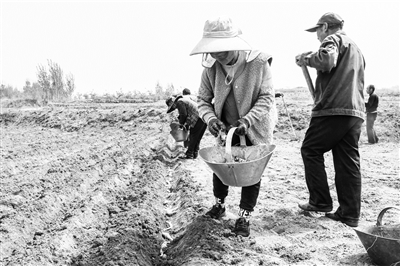 连日来,山东省泰安市岱岳区的黄精种植户抢抓春季生产时节,为黄精进行播种、培土、除草等管护作业。自2018年以来,岱岳区黄精种植面积已达2万亩,2022年农户亩均年收入达2.5万元。图为当地农业合作社成员在播种黄精。 新华社发