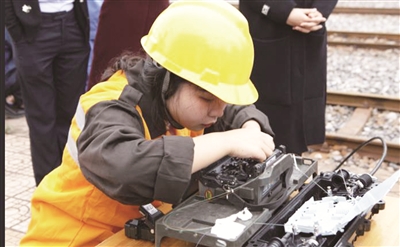 去年,她被提升为无线工区的副工长,成为车间最年轻、入行时间最短的副工长。我替她开心,知道她值得。我看过她的手,那上面留有很多干活的烙印,那些被电子元件剐伤的疤痕像花朵一样,那是她为了熟练掌握设备维修,用废旧模块反复练习时导致的。她的手掌皮肤有些粗糙,那是经常提着主机进行负重练习留下的老茧。她说:“我力气小的话,应急抢修时50斤重的设备都拿不动,怎么干铁路通信?”