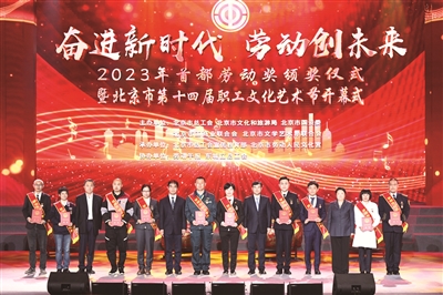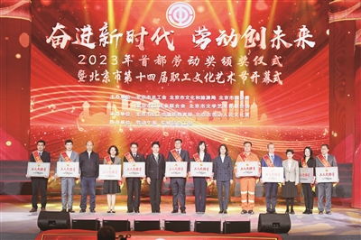 一首铿锵雄壮、富有时代强音的《咱们工人有力量》拉开了激情的序幕。4月18日下午,“奋进新时代 劳动创未来”——2023年首都劳动奖颁奖仪式暨北京市第十四届职工文化艺术节开幕式隆重举办。