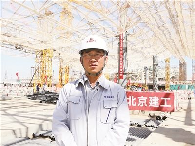 北京市机械施工集团有限公司新国展二期钢结构项目部项目经理邹建磊今年只有42岁,却是钢结构施工领域的一员“老将”。自2004年参加工作至今,他先后参与首都机场A380机库、首都机场海航集团维修机库、民生银行总部基地、北京世界葡萄博览园配套基础设施、北京银行顺义科技研发中心、北京大兴国际机场旅客航站楼及综合换乘中心(指廊)等多项重点工程建设,用匠心为一座座建筑精品铸就起钢筋铁骨。