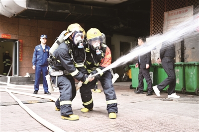 昨天下午,在展览路的一家养老机构,防火监督员拉动消防演练,微型消防站人员迅速出动进行“灭火”。为消除消防安全隐患,当天,西城区展览路地区属地政府、消防、市场、公安等部门联合针对养老机构进行检查,结合现场检查进行火灾防范安全提示。