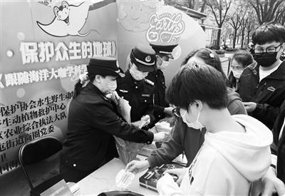 近日,由北京科学中心和工体富国海底世界联合举办的海洋科学巡展——《跟随海洋大咖学科学》地球日专场科普公益活动将三里屯太古里变成海洋科普大课堂。本次巡展包含软体动物、甲壳动物、棘皮动物、爬行动物、哺乳动物等生物标本255件,让观众更加直观地了解海洋生物。