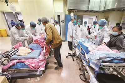 作为西城区区属医院,首都医科大学附属复兴医院不仅承担区域内日常急诊急救和突发事件的应急救治任务,还在2022年北京冬奥会等各类国家大型活动的医疗保障工作中留下了闪光的瞬间。新冠疫情防控期间,急诊科又成为了医院和新冠病毒斗争的主战场。纵使自己可能被感染,医护人员也坚决不下火线。他们全力提高收治能力,保持强大战斗力,日接诊量达到300人次以上,在患者最高峰时,同时有52个患者留观抢救治疗,有效降低了病死率。