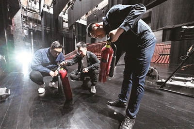 据北京人民艺术剧院保卫处工作人员介绍,为了给首都市民营造安全的观演环境,在“五一”节前,剧院的戏剧博物馆、消防中控室、微型消防站进行联合消防演练。消防演练以演出期间员工休息室突然冒烟起火为演练背景,重点演练应急响应程序、组织人员疏散、灭火扑救、消火栓和灭火器的操作使用等。而在“五一”期间,剧院工作人员依然不松懈,每场演出前都会对剧场消防设备、消防泵房等认真检查,排查隐患,切实筑牢消防安全“防火墙”,保障演出安全。